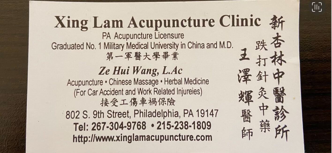 南费城杏林中医针灸诊所 接收车祸及工伤事故保险 位于华盛顿街和9街附近 [注册针炙师]