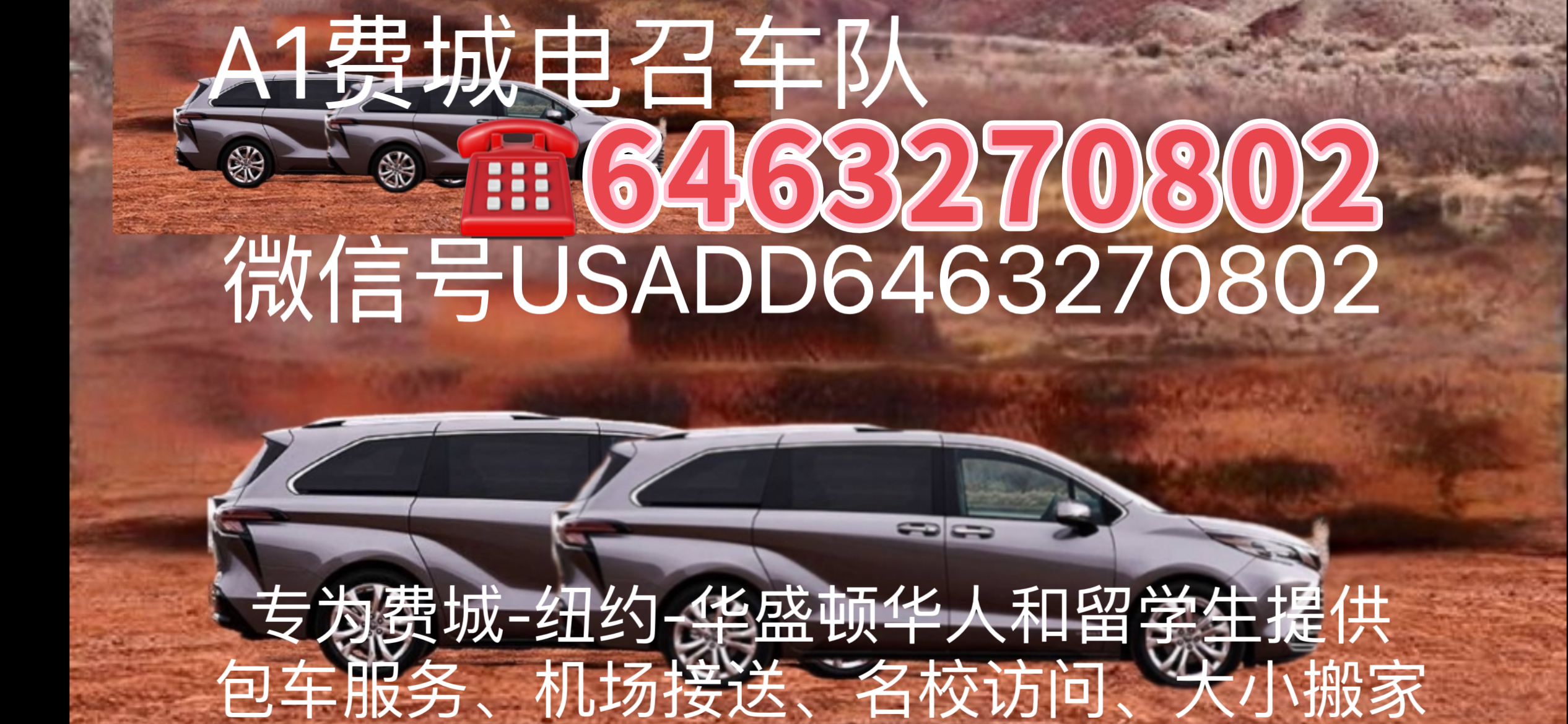 费城包车 接送机 等....联系6467321599 或微信.